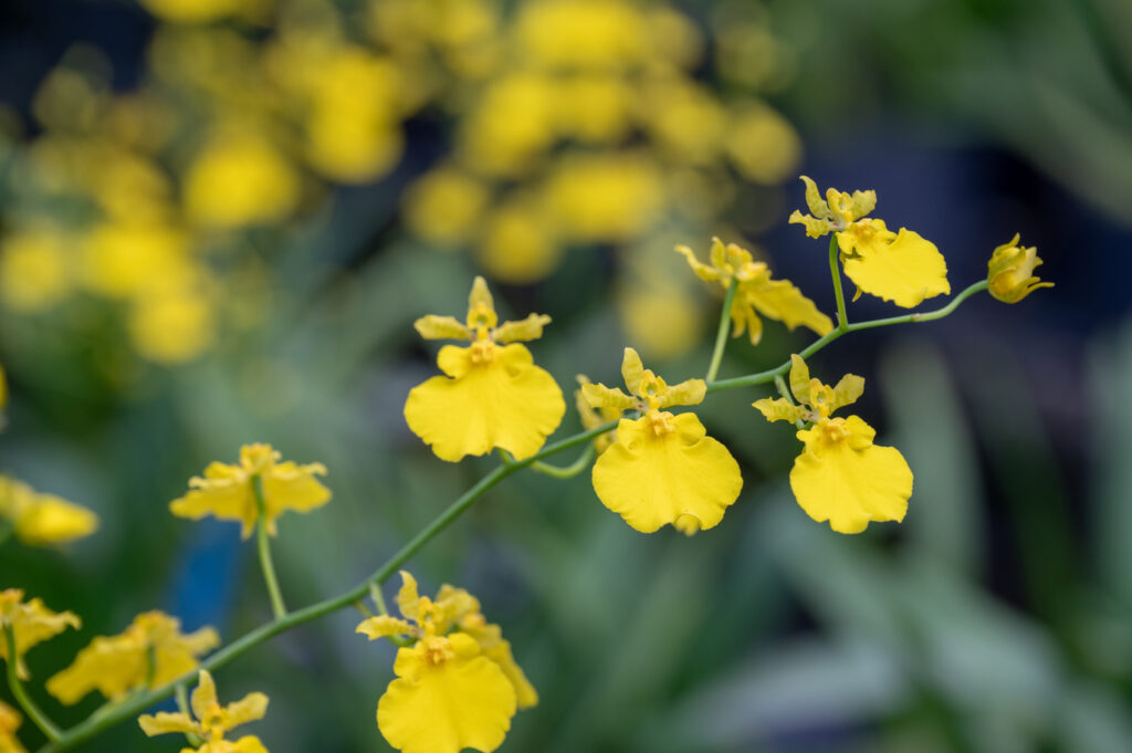Gogo-TaiwanFarm 수로 옆의 대형 하우스에서 선명한 노란 온시디움을 볼 수 있고, 그 하 …